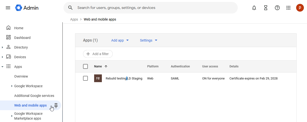 14.) Return to the Google Workspace Admin app.
