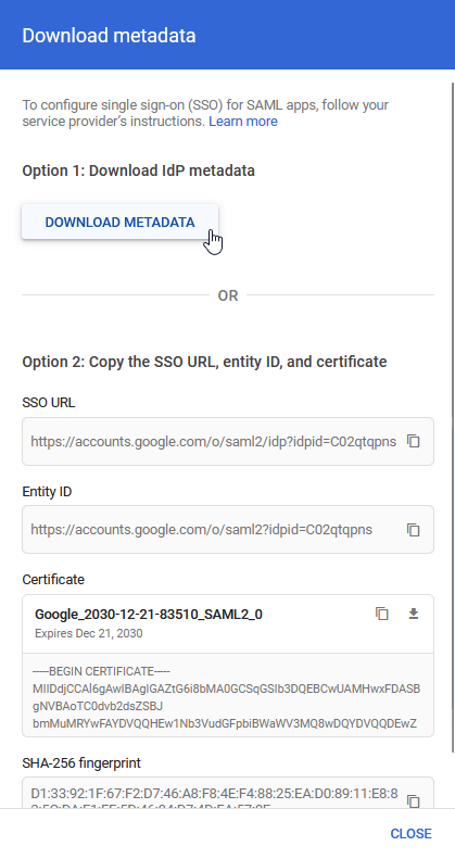 22.) Browse to or Drag and drop the downloaded ‘GoogleIDPMetadata.xml’ file