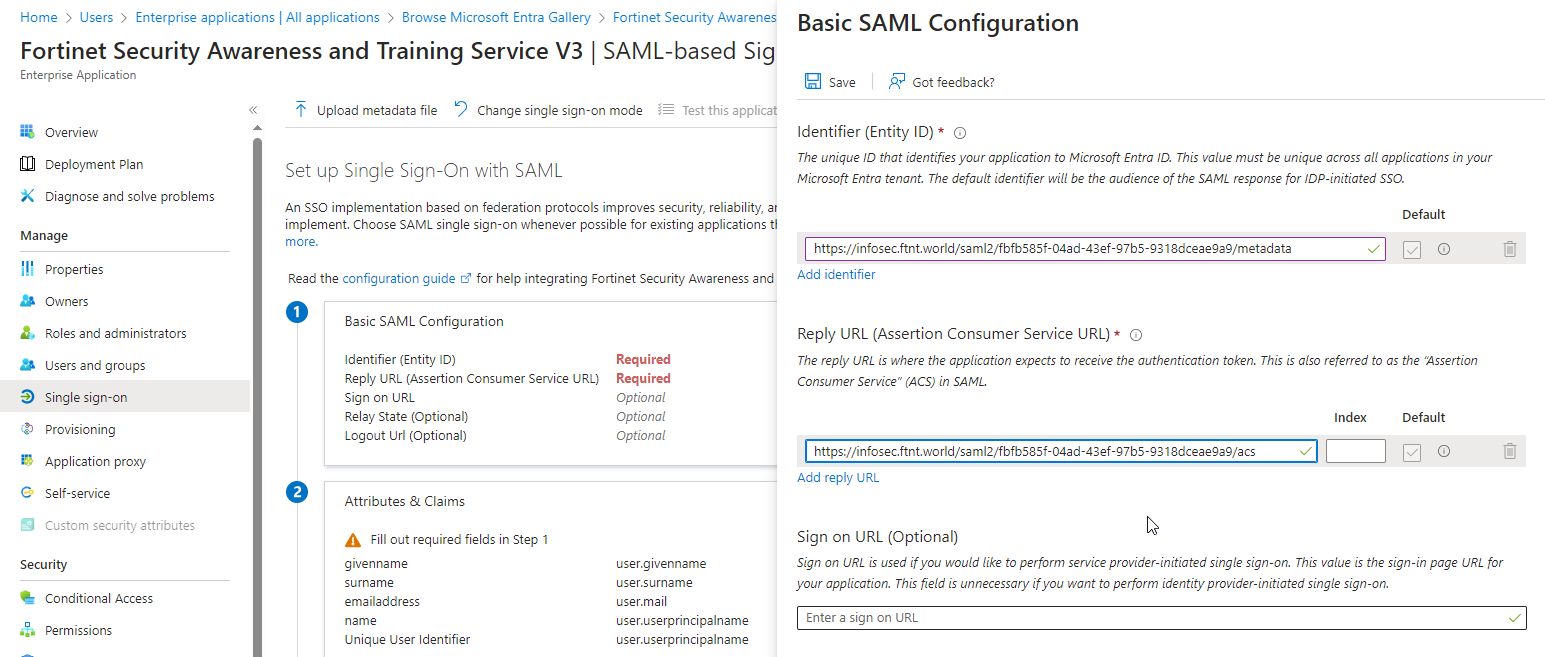 32.) Now, create a single user in the Fortinet Security Awareness and Training service and use the configured domain to verify that users can log in using SSO credentials from Entra: