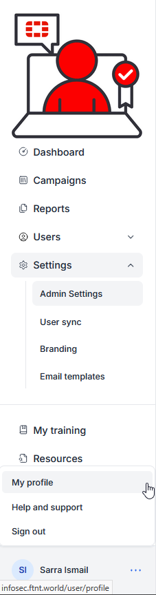 12) Select My profile from the user menu in the lower left corner of the service interface: