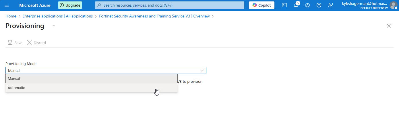 5) Enter Fortinet Security Awareness and Training Service V3 in the What's the name of your app? field. Ensure that the Integrate any other application y ou don't find in the gallyer (Non-galler) option button and select the Create button: