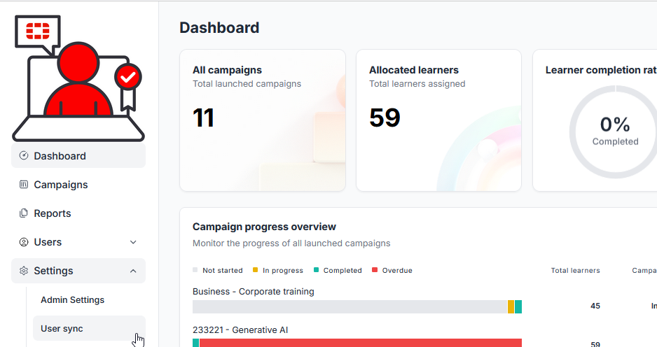 The User sync page is displayed: