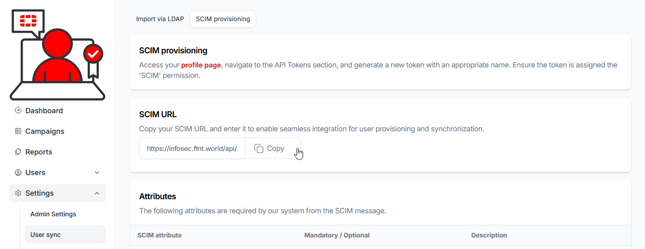 10.) Click the copy button to copy the SCIM URL: