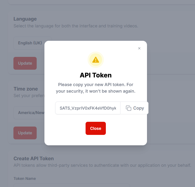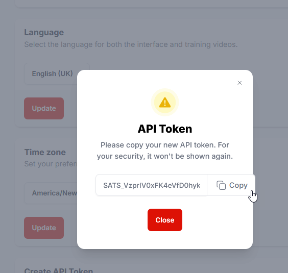 The API Token dialogue is presented.