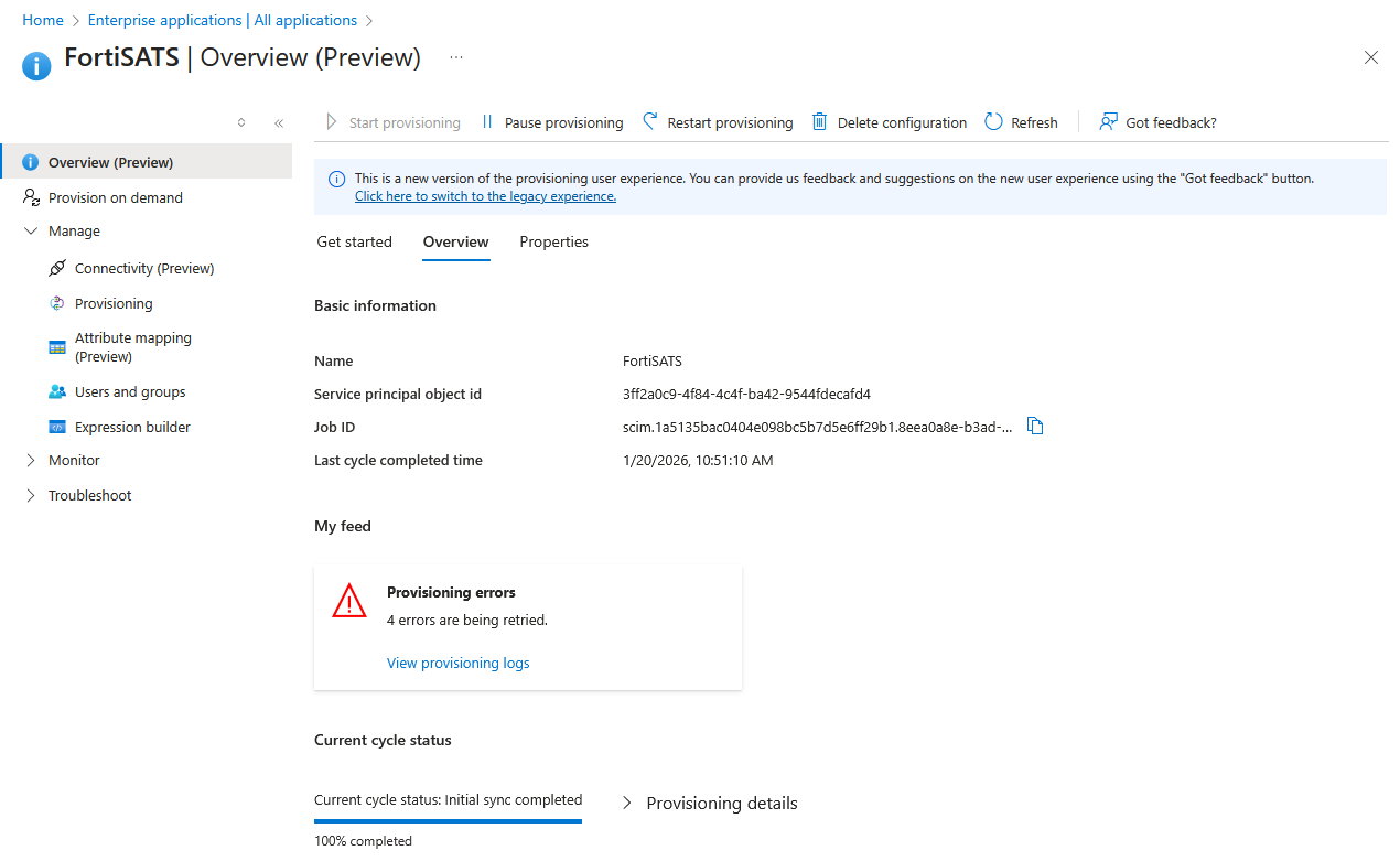 The Provisioning Overiew (Preview) page is displayed: